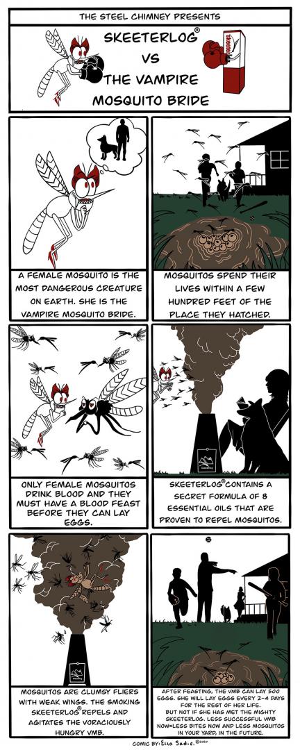 Take a look at the story board to learn how the Steel Chimney works. A 2-year efficacy study at a major university entomology lab, has just reaffirmed that the all-natural Skeeterlog’s® repellency is significant. We knew that and so did our customers. With science and technology the Skeeterlog® Steel Chimney allows you to really take control and enjoy your outdoor environment.